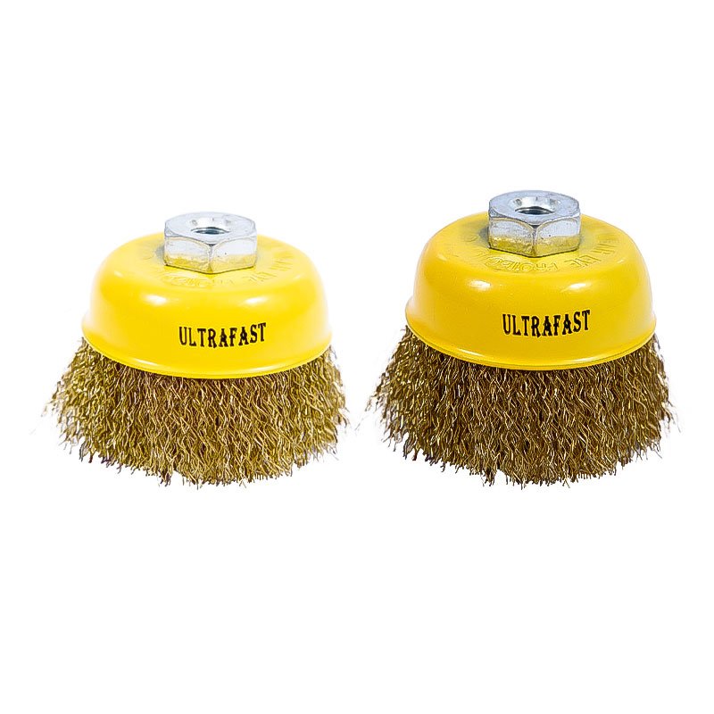 The ULTRAFAST Crimped Cup Brush is a versatile tool for general-purpose surface cleaning, rust removal, and paint stripping across various materials including steel, stainless steel, iron, and other metals. Crafted with high-grade crimped wire bristles, this brush ensures controlled abrasion while being flexible enough to conform to uneven surfaces. It's ideal for surface preparation before welding or painting, offering smooth and consistent cleaning. Designed for use with power tools like angle grinders, it provides excellent performance with low vibration and secure wire retention. Whether you're a professional metalworker or a DIY user, this crimped cup brush delivers reliable, long-lasting performance for your toughest cleaning and finishing tasks.
