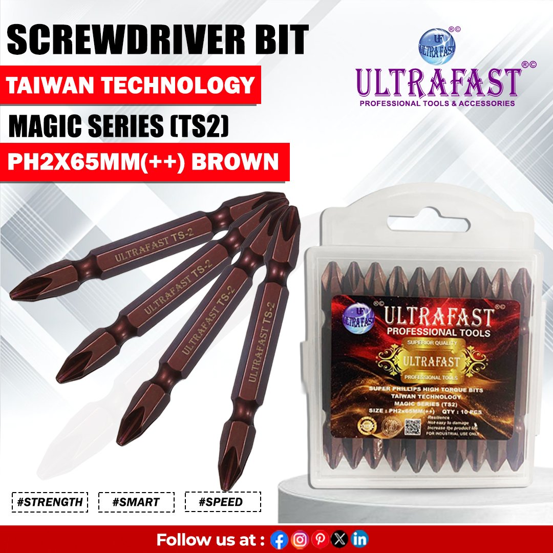 The Ultrafast Screwdriver Bits Magic Series PH2 x 65mm are engineered for strength, precision, and long-lasting performance. Designed for professional and DIY use, these bits provide a perfect fit for PH2 screws, ensuring reduced slippage and maximum torque transfer. Made from premium-grade alloy steel, they deliver durability and resistance to wear, even under heavy-duty applications. Ideal for woodworking, construction, and general fastening tasks across India, the Ultrafast Magic Series bits guarantee smooth, efficient performance with power drills or manual drivers. Compact and reliable, they are the go-to choice for accurate fastening with less effort and greater control.
