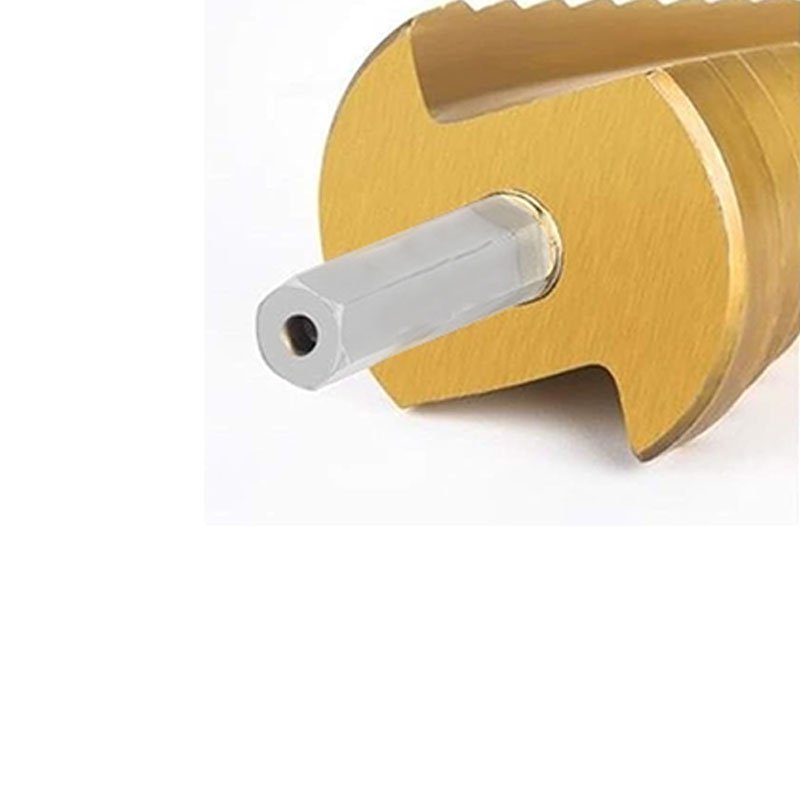 Make multi-size hole cutting faster and cleaner with the Ultrafast HSS Step Drill Bits (Titanium Coated). Crafted from high-speed steel and finished with a durable Titanium Nitride (TiN) coating, this bit delivers 10x longer life than standard bits while resisting heat and wear. Its smart stepped design eliminates the need for pilot drilling or center punching, making it perfect for automatic hole cutting, deburring, and enlarging in metals, wood, plastic, and polymers. The triangular shank ensures a secure grip in the chuck with zero spinning, offering full control during operation. The UF Step Drill Bit is trusted across India for its time-saving efficiency and reliable performance in workshops, fabrication, and installation tasks.