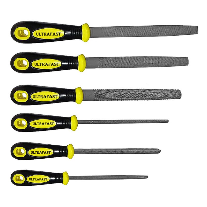 The Ultrafast Steel Files with Handle – 6 Pcs Set is a comprehensive solution for precise material shaping, edge finishing, and surface smoothing across metal, wood, and plastic. This all-in-one set includes six essential file shapes: ✔ Flat File ✔ Half Round File ✔ Round File ✔ Wood Rasp File ✔ Squared/Taper File ✔ Triangular File Each file is made from hardened high-carbon steel for extended durability and sharp performance, and comes with a comfortable, anti-slip handle for better grip and control during use. Available in sizes 6"", 8"", and 10"", the UF 6-Piece File Set is ideal for workshops, garages, maintenance kits, and DIY users across India looking for accuracy, variety, and long-lasting tool life.